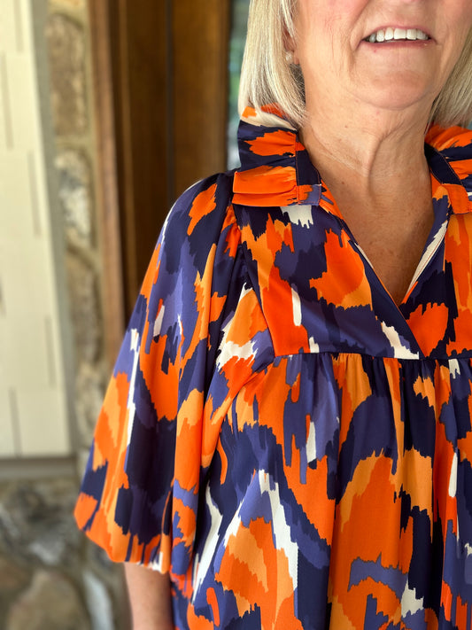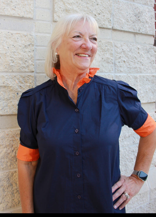 Abby Dress- Navy & Orange