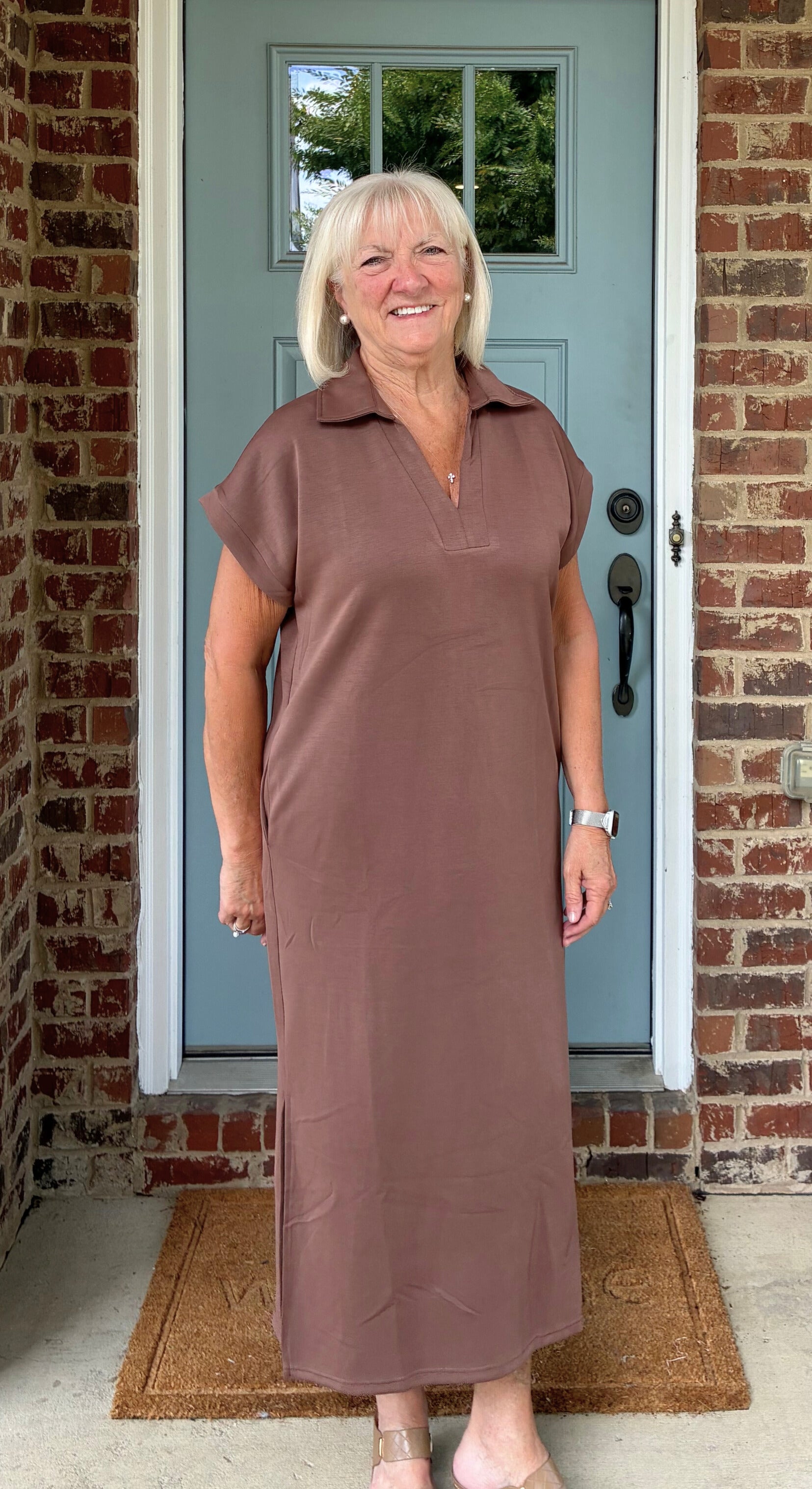 Designed for effortless sophistication, this sleeveless maxi dress features a classic collar neckline and a soft, flowy silhouette that drapes beautifully. Crafted from a breathable rayon-cotton blend with a hint of stretch, it offers all-day comfort without compromising on style.