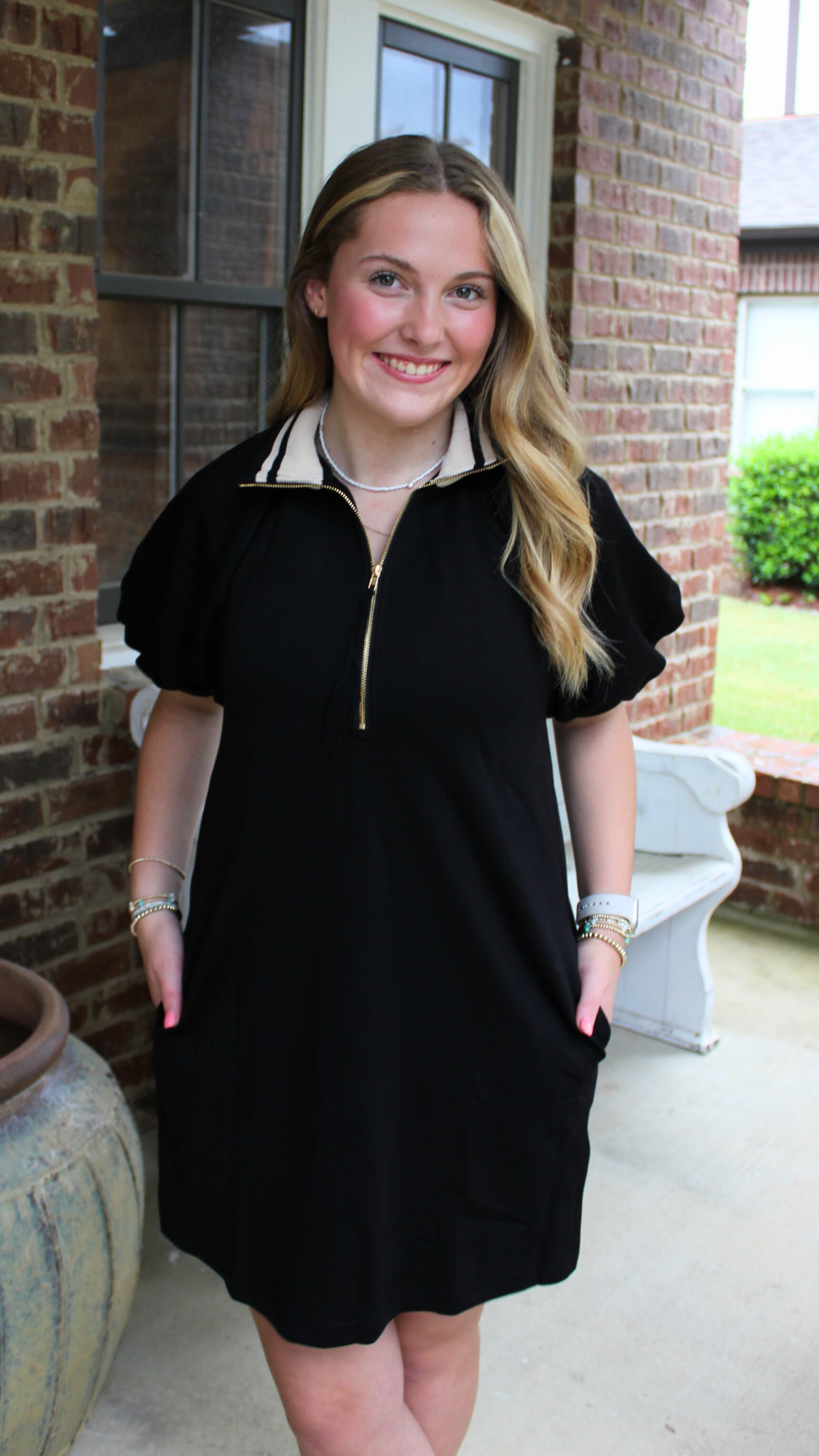 This Two Toned Quarter Zip Dress blends sporty detail with everyday style. Designed with multicolor ribbed trim, a functional zipper front, and side pockets, it’s the perfect mix of casual and chic. The lightweight knit fabric is comfy and breathable, making it a go-to for effortless dressing.